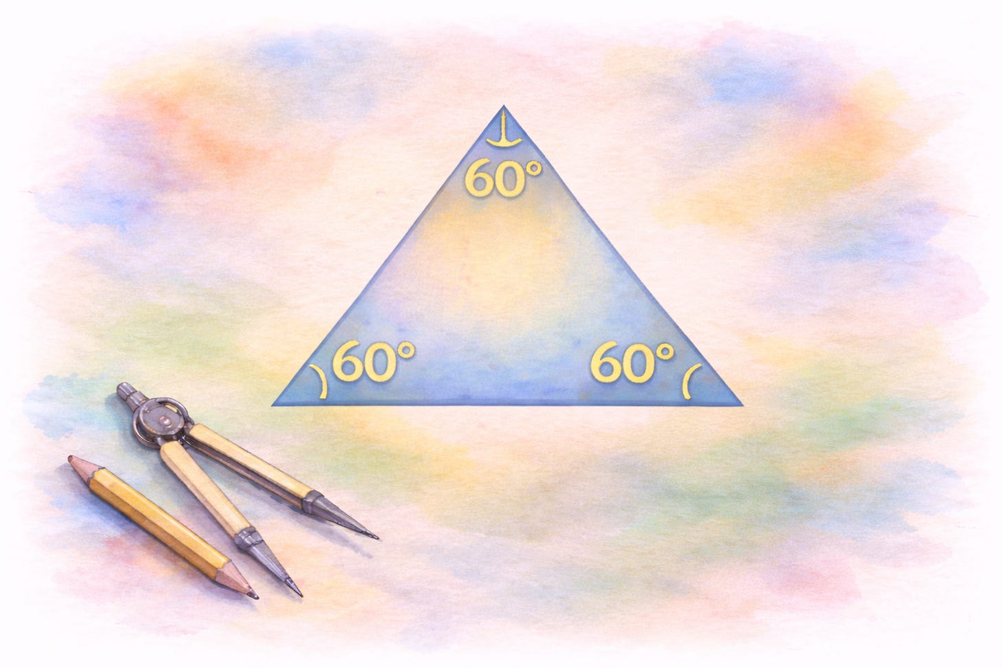 There is also something existential hiding here. The triangle is the simplest closed act of return. You leave, you turn, you leave again, you turn again, and eventually you come home. The fact that this return has a precise measure in flat space tells us that our world is locally coherent. It does not fold unpredictably under our feet. It allows orientation, memory, and navigation. That reliability is not abstract. It is what makes building, walking, drawing, and even thinking possible.